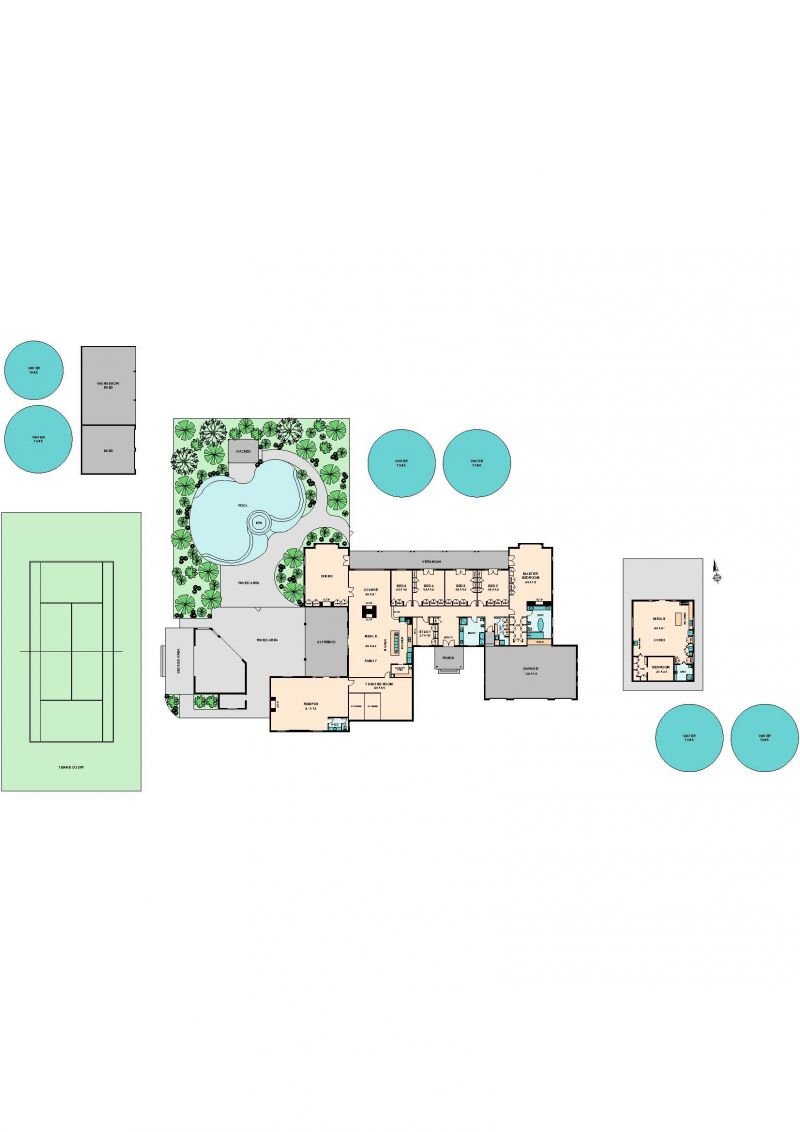 1500 CDs has each individual controlling their own environment and none more so as found in the master bedroom. Michael Buble's dulcet tones confirms the owners attention to detail in a room that even this oversized king bed is lost. More redwood timbers line the Kingly walk-in robe but wait until you see the ensuite. Equal to top end spa's you enjoy this quiet corner for free as the master/mistress of this superb home. The private oasis has its own real “Oasis†in the north-west corner. Salt water, solar heated pool travetine style tiling and you guessed it - sand, lots of sand and lots more views - wow factor plus of course. If you were wondering what to do after the entertaining, the movies, the dining, the dancing, the soaking in glorious tubs in pure elegance, there is a full competition tennis court for the sporty family. Truly you do not have to ever leave this glorious residence - and if you are wondering how you are going to look after it all “don't stress†there is a full one-bedroom residence separate to the home with its own residence for your live in manager. What a package on 27 magnificent acres and only 1 hour from Melbourne. Private inspections only, call Alan Wilson 0417 577 988.