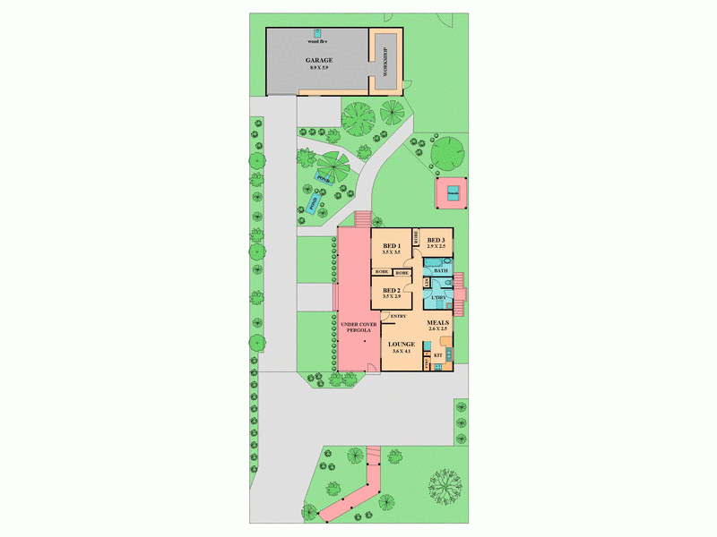 At first sight, this charming home will enchant and delight, with an ambience enticing you to cross the threshold. Wander through a captivating arbor and relish the journey into this beautiful garden. Numerous lights dance merrily between the plantings of the maintenance free garden and oh, what get-togethers you could have with music wafting on the breeze and the flicker of fire as it dances in the combustion heater keeping the very generous (12m x 6m approximately) garage and workshop, warm and cosy in the cooler months. Summer nights on the verandah, a cool drink and the soft sounds of water gently cascading on its journey, can you imagine a better way to spend your evenings. Such an opportunity awaits the fast hare, not the slow turtle! Three good size bedrooms with built in robes, a lovely lounge which looks out onto the verandah and a great kitchen and meals area completes this very attractive picture. Polished boards throughout and split system enhance and maintain the very comfortable atmosphere which flows through this home.
