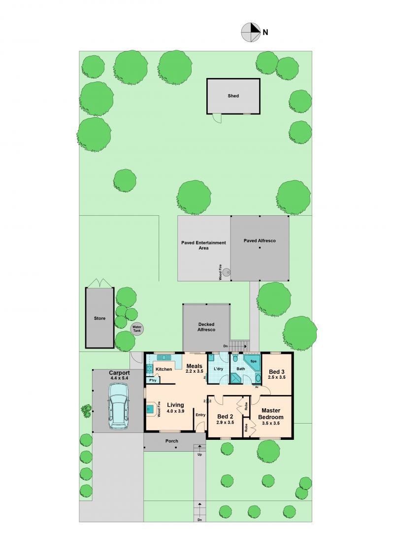 The spacious living area is perfect for relaxing, with a charming wood fireplace to keep you toasty through the colder winter months. On warmer days, the split-system air conditioning ensures that you can enjoy the comfort of your home year-round, no matter the season.