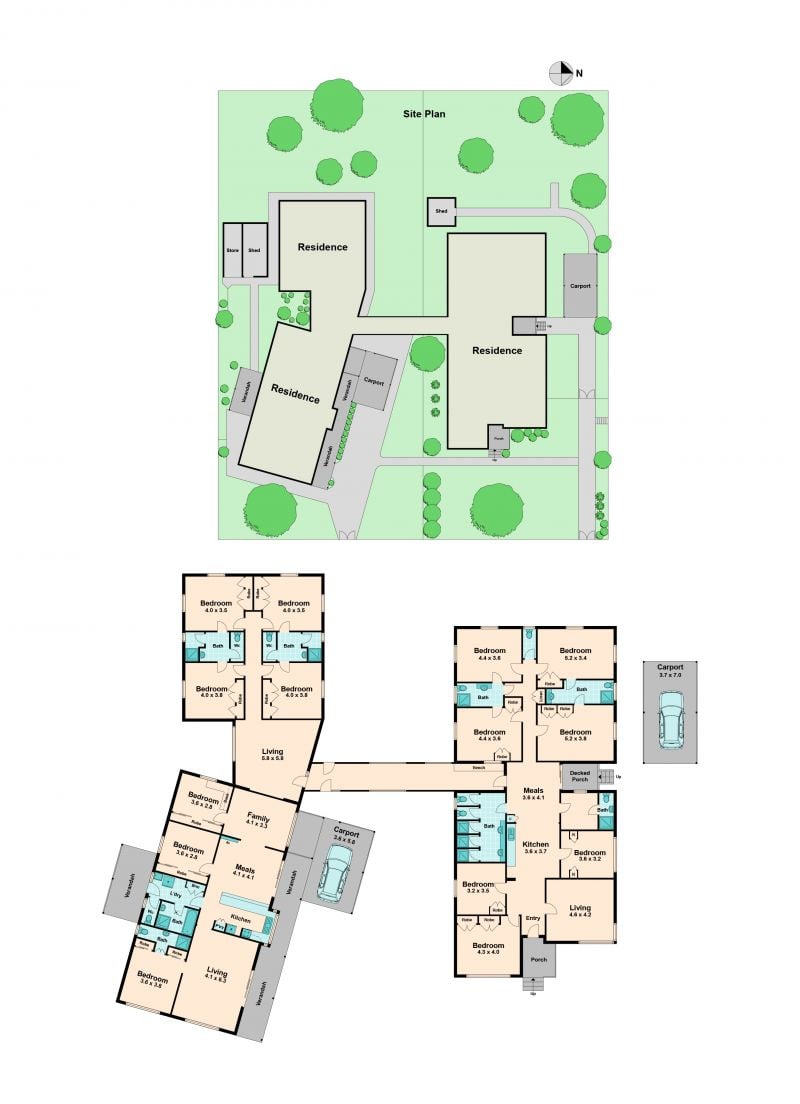 - Two dwellings comprising 14 bedrooms and 8 bathrooms in total