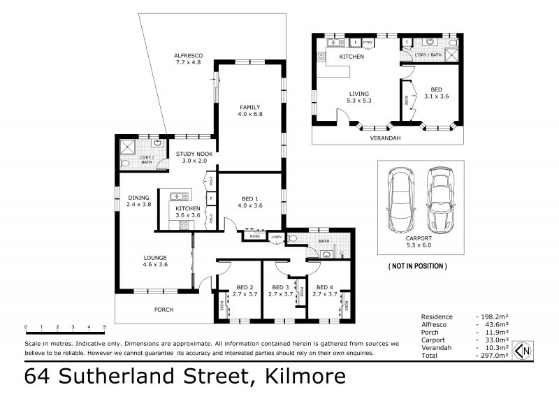 The main home is a 4-bedroom, 1 bathroom and 2 WC's home offering 2 living areas, dining area, laundry with facility to add another shower and alfresco. Recently re-clad and insulated all it needs is a coat of paint.